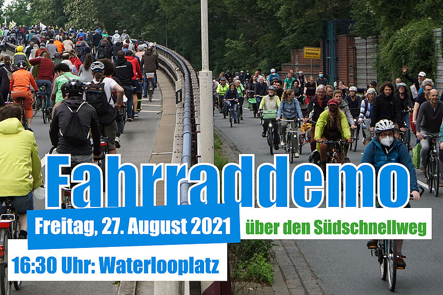 Fahrraddemo über den Südschnellweg am 27.08. um 16:30 Uhr. Los gehts auf dem Waterlooplatz.